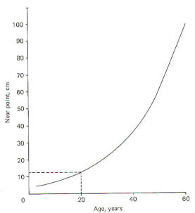 the near point increases with age. It is typically about 12 cm